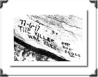 The police searched three caves that are pretty well hidden from sight but are known to be n the area near Camp Scott. Police dogs located one of the caves, two miles from camp, where police found evidence linked to the murders: a flashlight battery, newspapers from the same edition of the Tulsa World, eyeglasses that were apparently stolen from the camp, duct tape that matched the kind found on the girls’ bodies, and two photos of women. Additionally, on the wall of a nearby cave was written: “The killer was here. Bye bye fools. 77-6-17.”